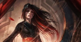 Mischievous Rain's stated goal was to stop the Resurrectionists' threat of the "Port of Shadows" – a prophesied woman who would conceive the Dominator's reincarnation and therefore posed an existential threat to the Domination. She had supernatural tattoos which moved on her skin, wore a yukata that featured both a "midnight" blackness that was darker than any other cloth and moving star shapes, and was often followed by a magic sound like wind-chimes tinkling. She flew a flying carpet that was "wildly colored and iridescent, like peacock feathers" stretched around a wooden frame "twelve feet long, eight feet wide, and one foot high."[1]